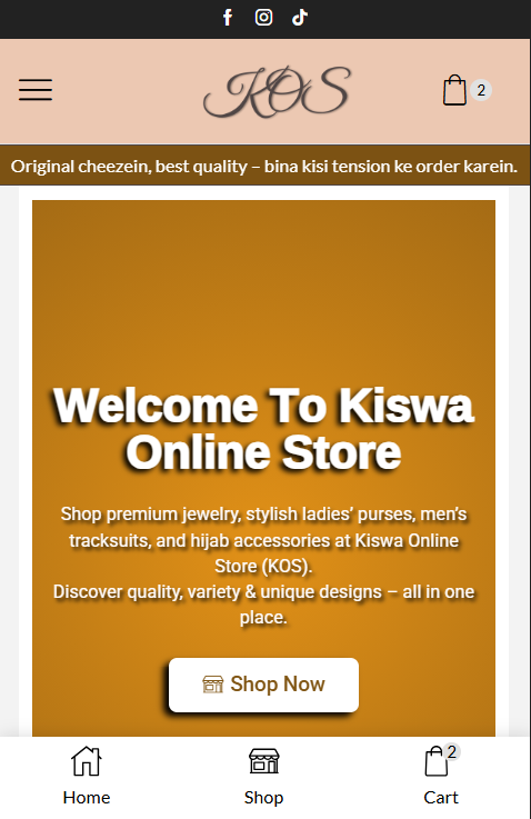 One of the most impressive aspects of this store is its Progressive Web App (PWA) functionality. When users add Kiswa Online Store to their Android home screen, it automatically behaves like a standalone mobile application — complete with its own icon, splash screen, and full-screen layout. This gives users a true app-like shopping experience without needing to download anything from the Play Store.